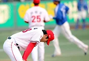 어제 경기 무조건 자기 잘못이다고 회개(?)를 한 곽정철. 그렇게 열심히 준비해놓고는 자기 공을 뿌리지 못했다.