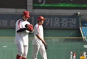 약속은 약속. 김선빈 보고 업히라고 했는데 거절한다. 내가 업으면 자기 다리가 땅에 닿을 거라나 어쩐다나. 둘이 키 가지고 티격태격하자 덕아웃 반응은 도토리 키재기.