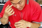 하세베 코치님이 관심을 보이니.. 골든 글러브라면서 웃는다.