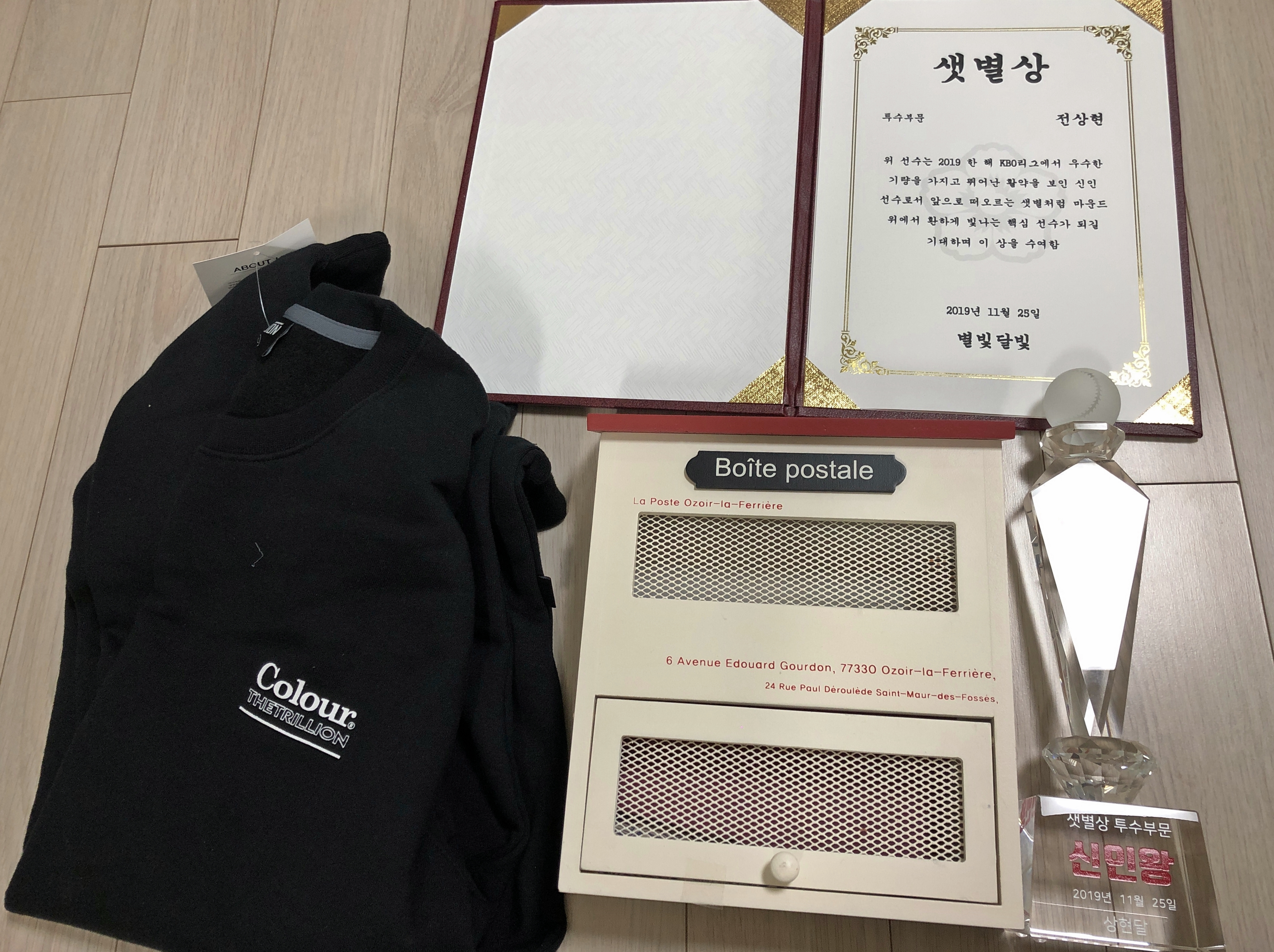 팬들에게 이런 선물 처음 받아봤다며 수줍어하던 전상현. 액션까지 취하면서 이렇게 집에 장식해놨다고 자랑스럽게 웃었다.