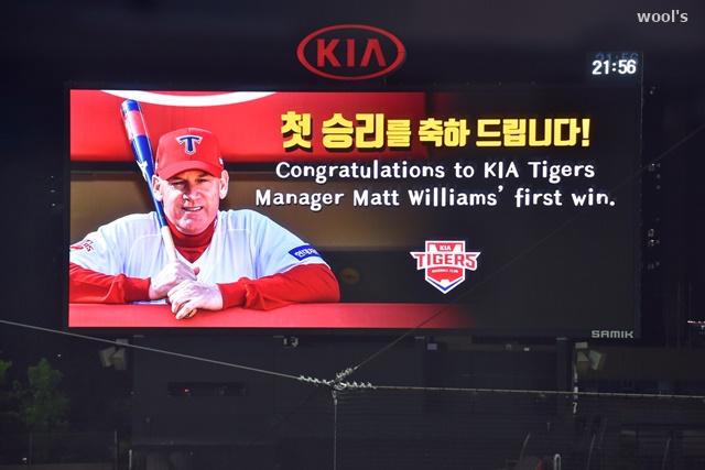 맷 윌리엄스 감독의 첫승 기념.