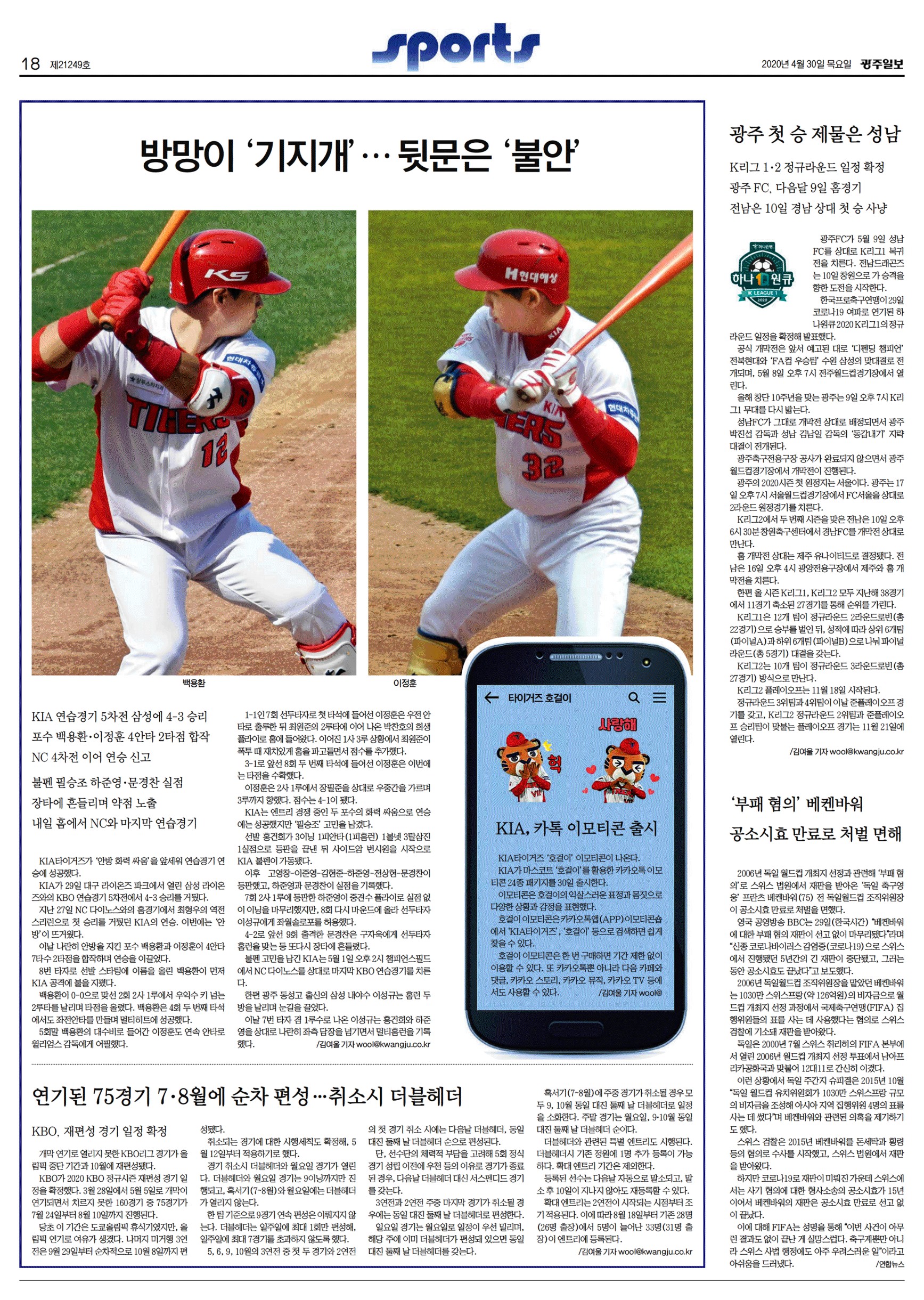| 팬 투표 역대 최고 캡틴 여름 “K리그1, 광주 쉽게 못 볼걸?” (20.04.29) (0) | 2020.05.12 |