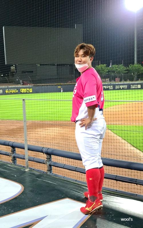 아무래도 이벤트 유니폼이라서 여벌이 많이 없다. 그래서 6회부터 가뇽의 유니폼을 입고 공을 던졌다.