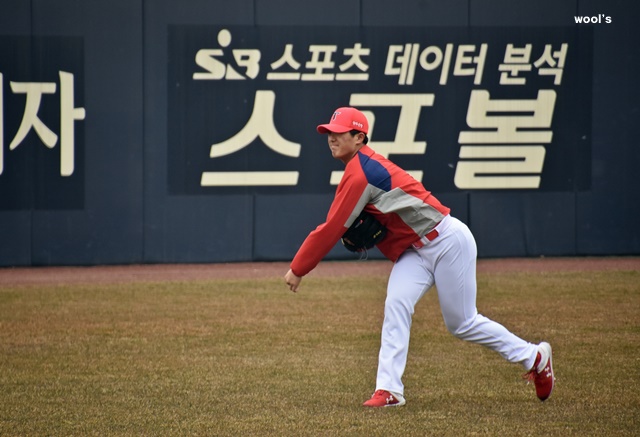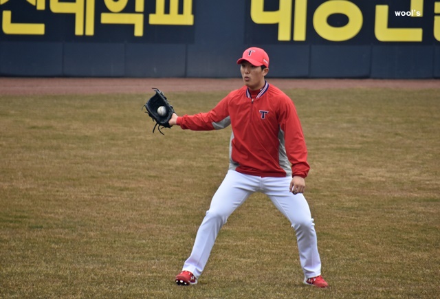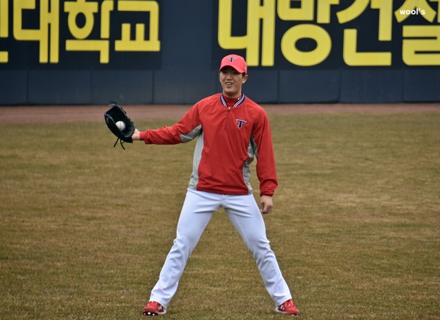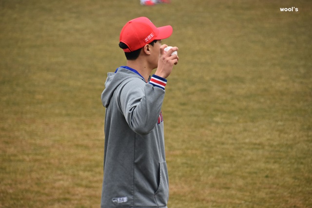 김유신은 첫날 이준영과 캐치볼 호흡을 맞췄다.