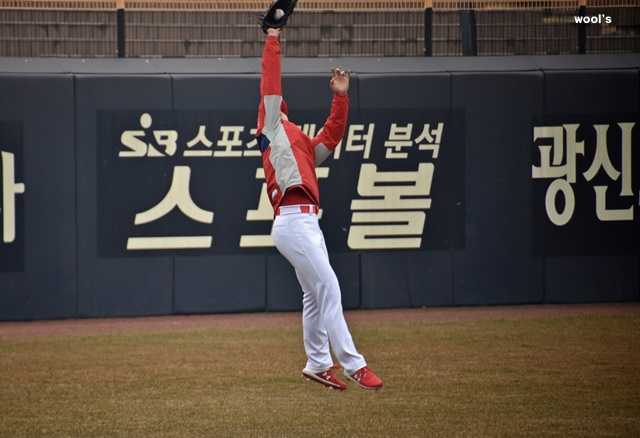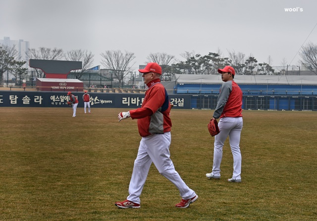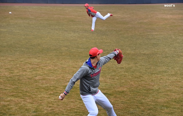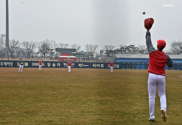 캠프 첫날, 예상과 달리 실외에서 캐치볼이 진행됐다.