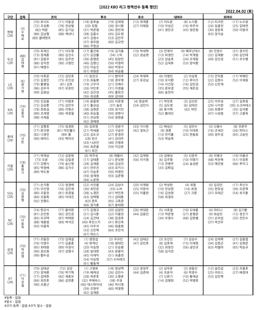 | 프로야구 2022년 4월 3일 전적 - LG·두산·삼성·키움·SSG … KIA, 수비에 울었다 (0) | 2022.04.04 |
