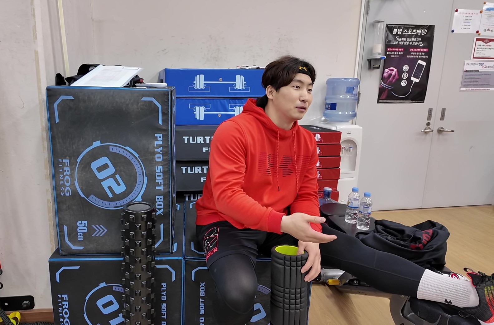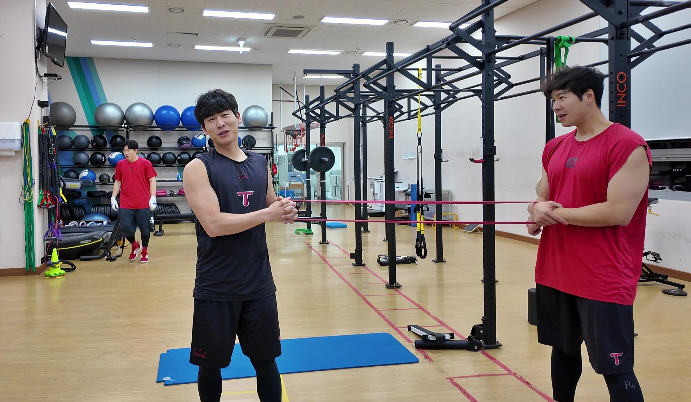 훈련하는 영상 찍으니. 박찬호가 바보가 됐다면서 부끄럽단다. 오랜만에 운동하려니 몸이 말을 안 들은다면서.. 김대유 피지컬 코치.